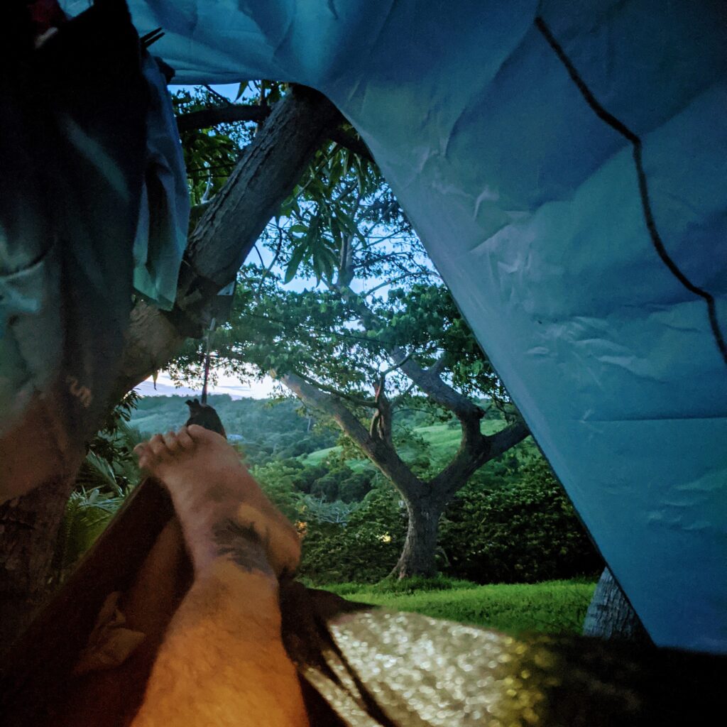 I’ve traveled with my hammock all over the place. It’s compact, lightweight, and all I need are two trees to be comfortable. This trip was no different. I packed my hammock, a rain fly, and the bare-bones camping essentials and figured I’d let the island handle the rest.