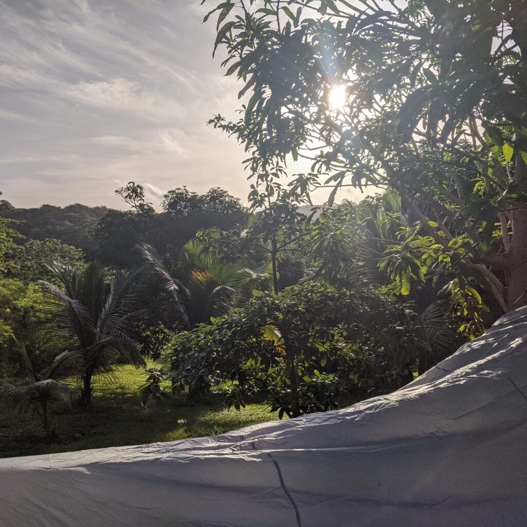 Once the storm passed and I fixed my setup, it transformed from the worst night of rest into the absolute best. I slept peacefully, wrapped in my hammock, listening to the forest breathe—leaves rustling, insects humming—while a gentle breeze from my little ceiling fan kept things cool.